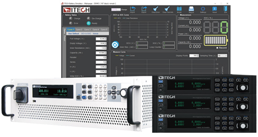 電池模擬軟件,搭配高速高性能雙向直流電源電壓可達2250V,功率可擴展至1152kW,滿足用戶從小功率電池模組到大功率儲能電池的一站式電池模擬器需求,電池模擬器為被測試電機控制器供電,可模擬電池,還可進行電池包充放電測試,模擬多種電池充放電特性,可模擬電池輸出特性、電池充放電特性。系統具備高精度及高動態響應特性,并具有向電網回饋能量的功能。輸出具有可編程功能,通過不同的控制軟件可用于電驅動控制器、總成系統測試。